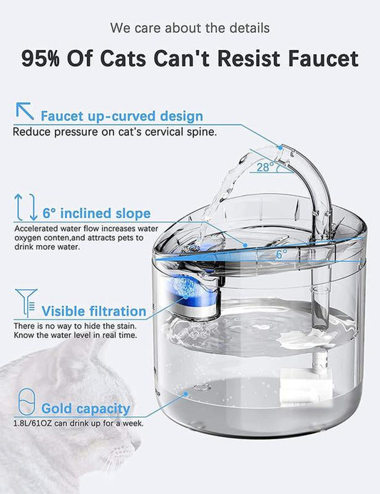 Fuente de Agua Automática para Gatos 1.8L - Bebedero Silencioso con Filtros
